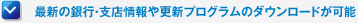 ソフトを起動することなく、簡単に銀行コード・銀行名、支店番号・支店名をダウンロードし、データを更新することができます(*1)。既に作成済みの各種データに含まれる金融機関に異動があった場合、ダウンロード更新後にチェックリストを出力することができます。(*2)