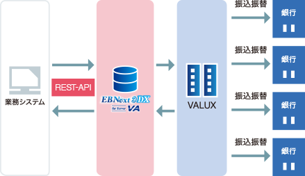 インターネットを利用し、VALUXを利用可能な金融機関に対してVALUXサービス経由で通信を行うことができます。